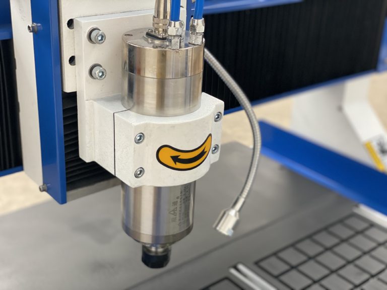 Sur option, des broches de 2200W et 3200W refroidies à eau sont disponibles. Ces broches sont conseillées lorsque les matières à usiner sont dures (aluminium, laiton, verres acryliques, …), elles permettent également d’utiliser des vitesses d’avance plus élevées, des incréments de passe plus importants et d’installer des fraises de plus grands diamètres.
