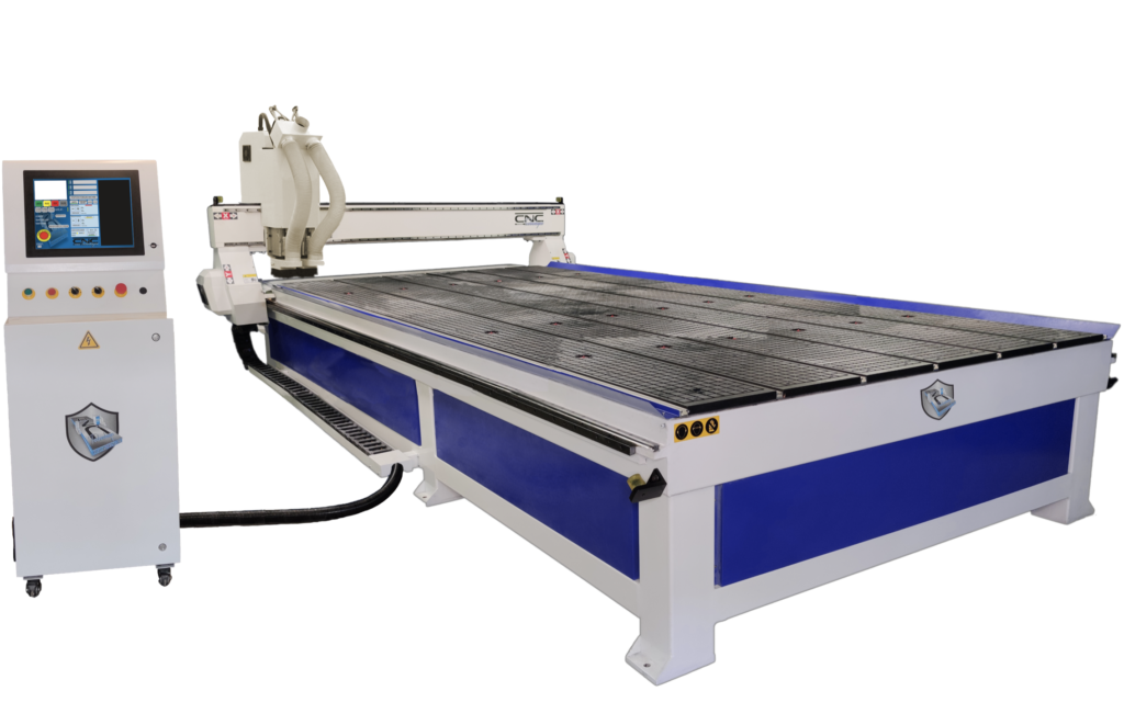 Broches 4500W refroidies à eau, table à dépression avec pompe à vide 5500W, aspirateur à copeaux 1500W, servomoteur Yaskawa 750W en X, Y et Z, connexion ethernet.