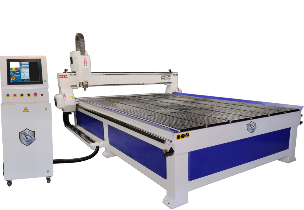 Broche 4500W refroidie à eau ou 5500W refroidie à eau, servomoteurs Yaskawa 750W en X, Y et Z. Table à dépression avec deux pompes à vide 7500W et aspirateur à copeaux 1500W